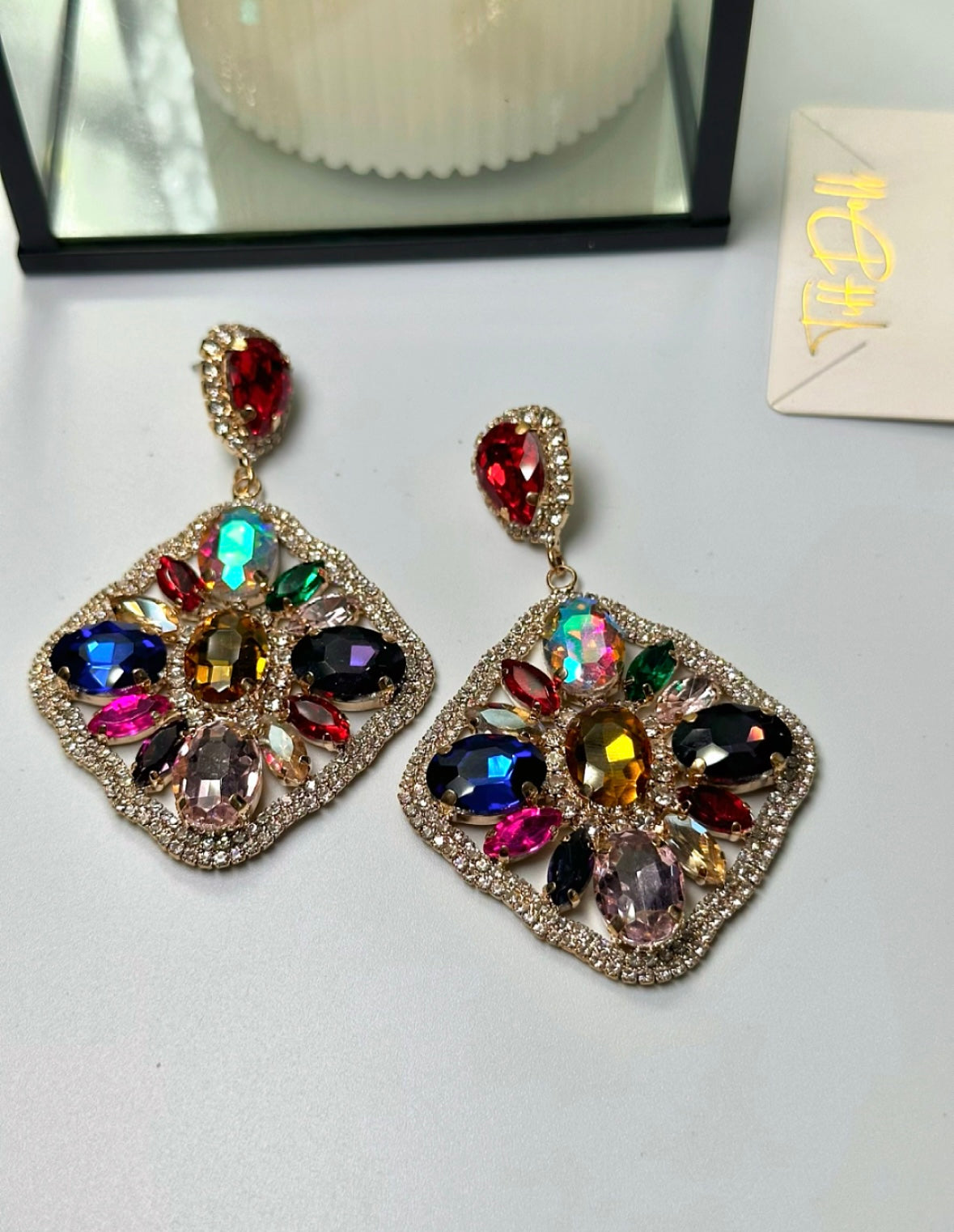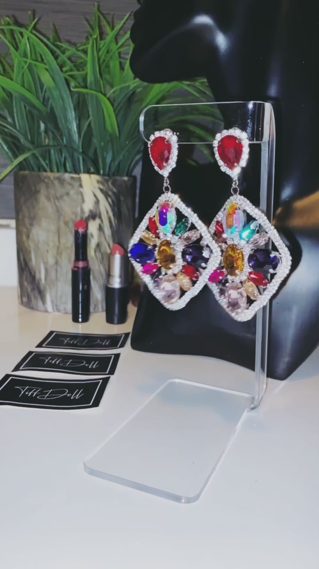 Super fun and glam, colorful earrings that offer Crystal stones of different colors. Be the star of the show with these flashy beauties!