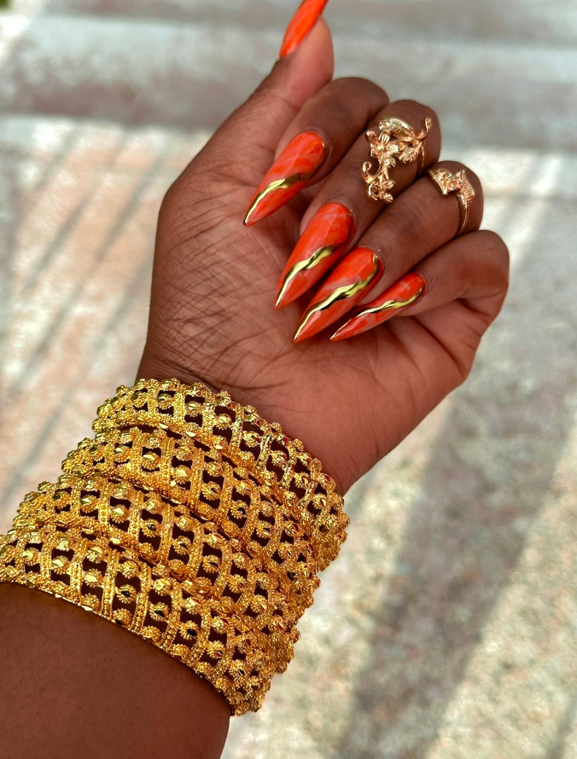 OMG! These new, gold chunky bangles are absolutely stunning! Perfect for any season and any outfit, these bangles glimmer beautifully and can be worn year-round. Plus, they’re adjustable, so no sizing worries—just slip them on and go!