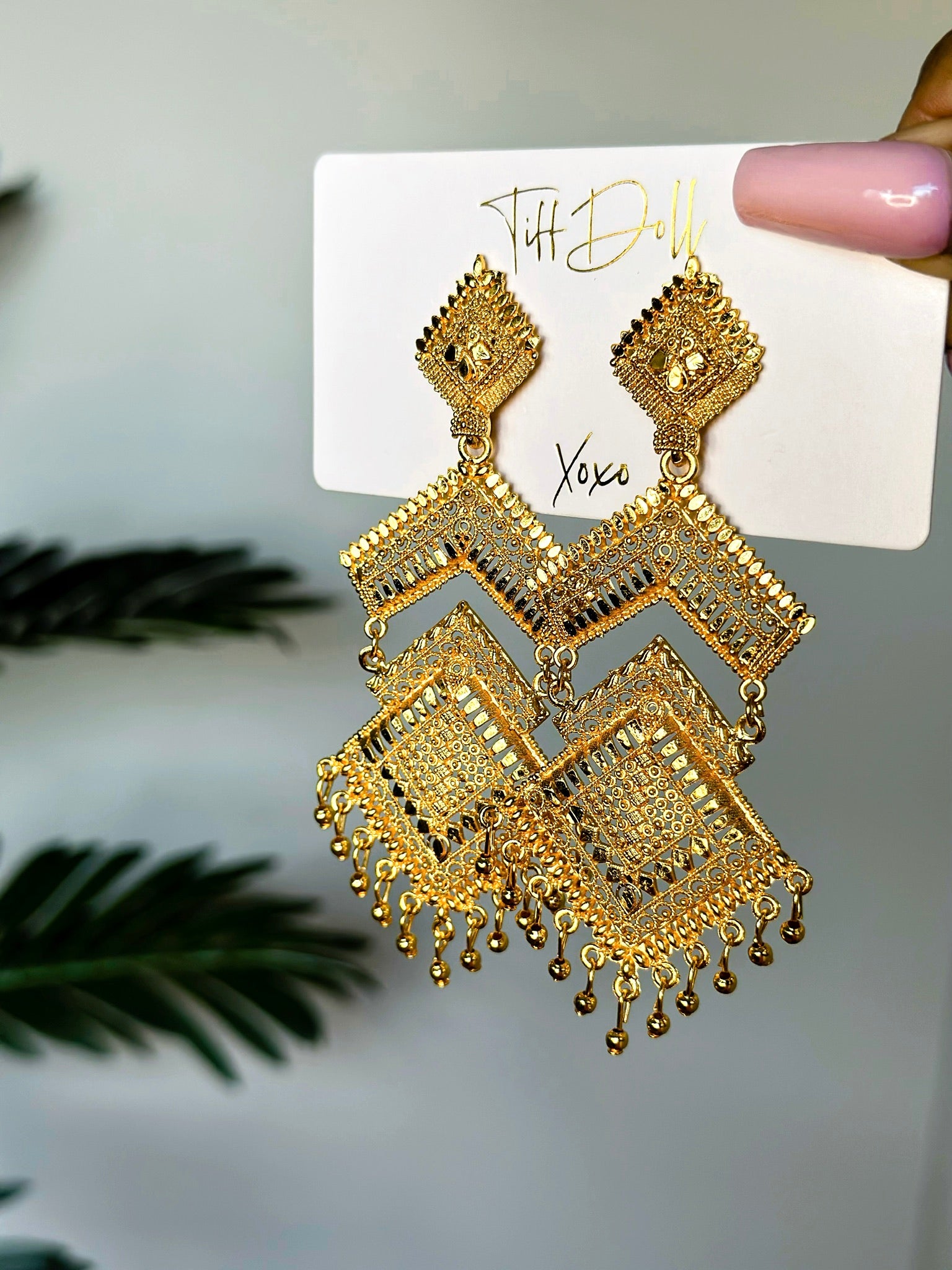 Gorgeously designed Gold Earrings. Lightweight and perfect for your next vaca or date night.
