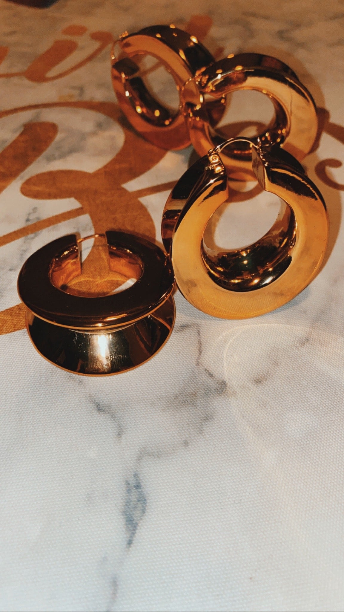Lightweight + Stylish Gold Earrings. This chunky earring design is UNIQUE to the jewelry scene and super classy! There are also 4 other styles from the Powder Gold Collection to choose from.