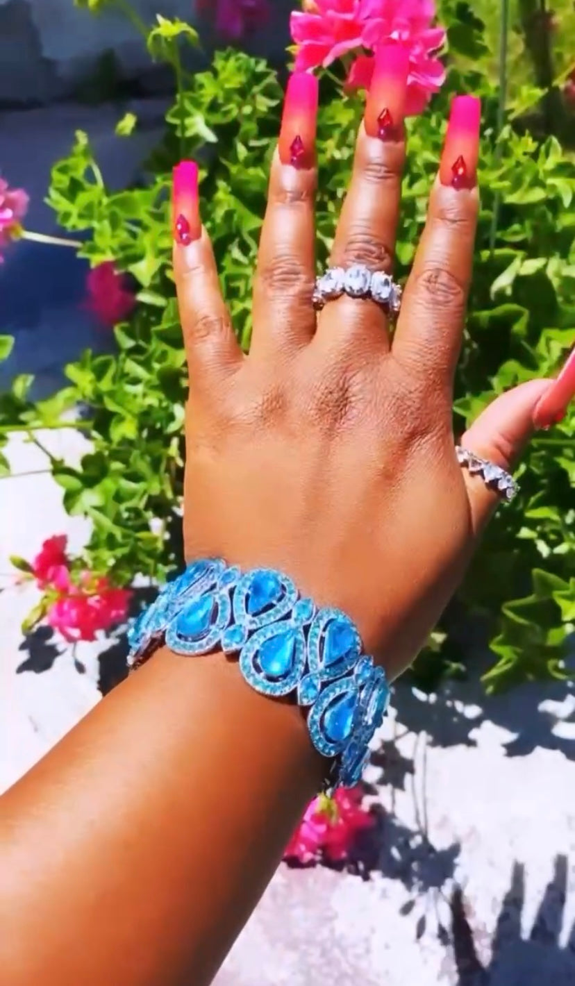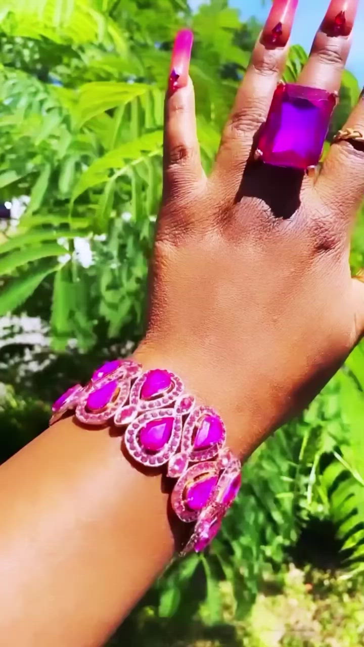 Elegant bracelet covered in Magenta OR Blue Crystal stones. An easy addition to any colorful outfit.
