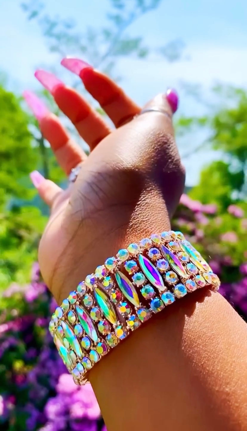 Classy and rich-looking bracelet covered in Iridescent colors. An easy addition to any colorful outfit.