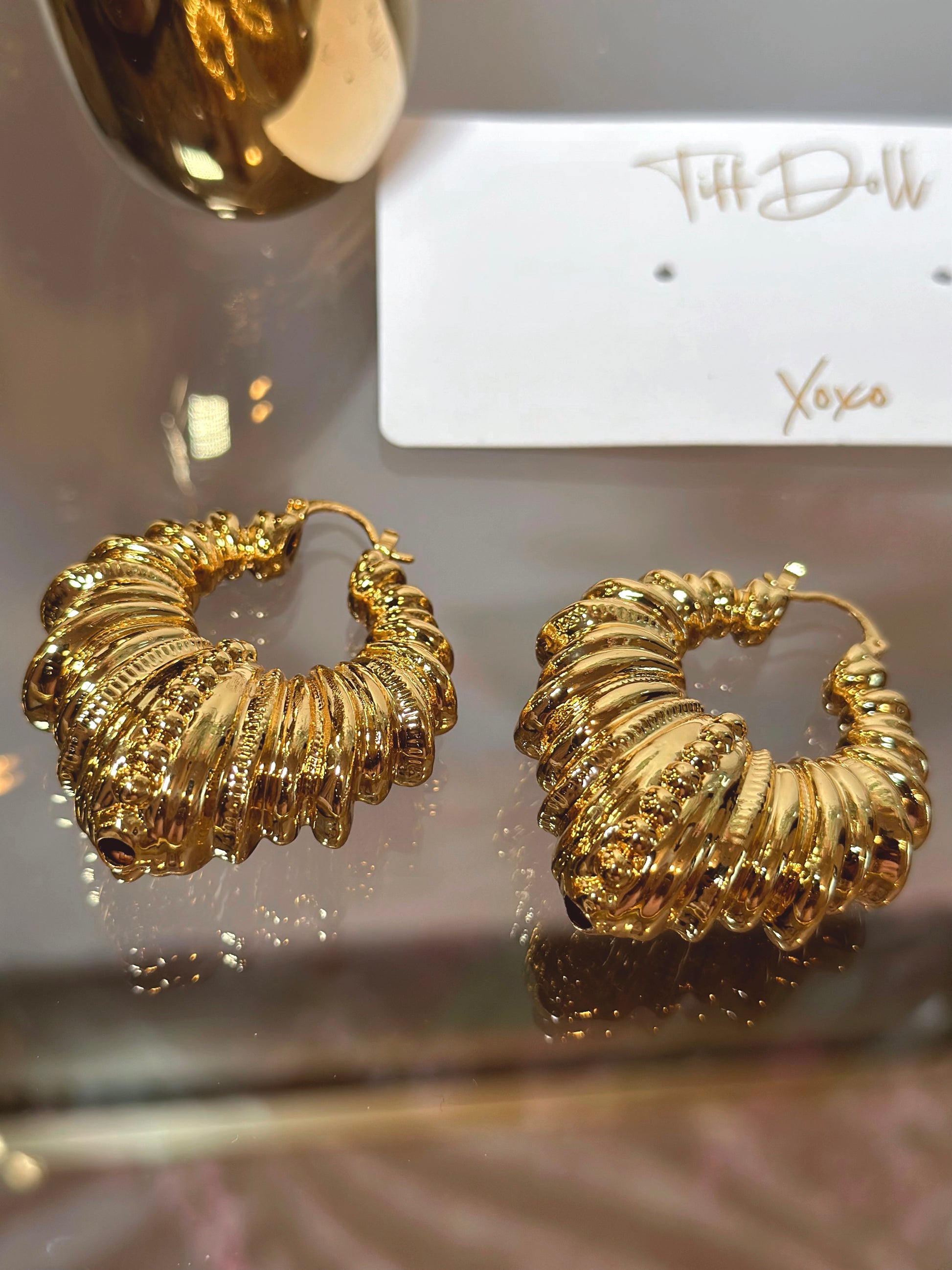 Lightweight + Elegant Gold Earrings. This chic detailed design is super comfy to wear! Can be worn to an upscale event or on a busy day running errands.